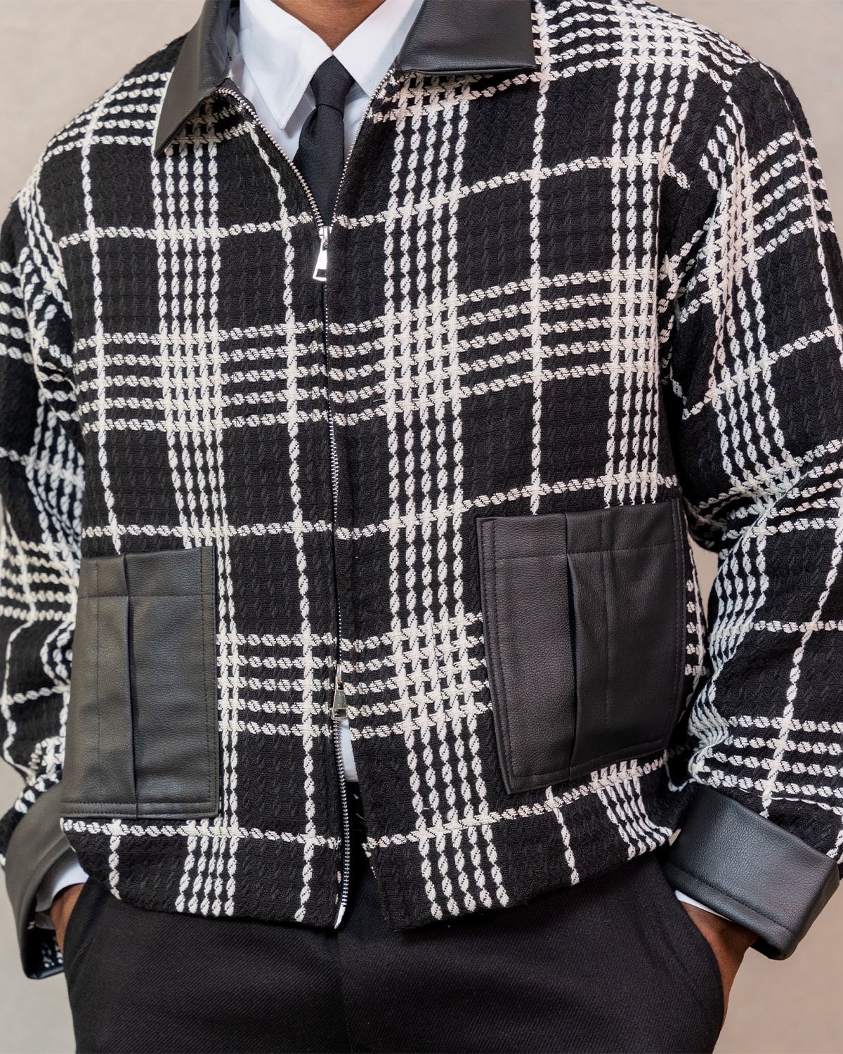 Model's height: 178cm/ 5’10”Model is wearing: XXL• Collared neckline• Non-Stretchy fabric• Tweed and leather fabricMachine washable at low temperature with MILD soapThis is a KESH DESIGN – “The Proper Edit” Collection Designed and made with the highest quality fabric for all day comfort!